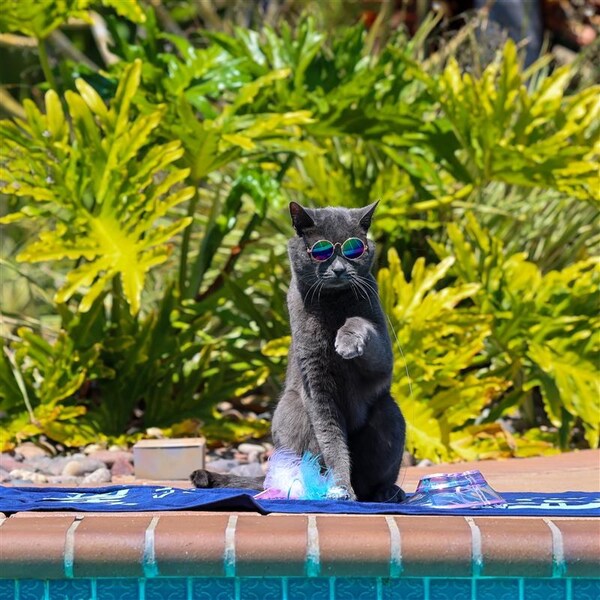 - Fresh, Functional Fashion: Pets can show off their style and stay cool with a matching set – a vest, hat and socks – in a fun wave design. For pups that enjoy taking a dip, a new swimsuit and mermaid fin floatation vest allow them to make a safe splash at the pool "pawty." When it's time to dry off, pets and pet parents can share full-sized beach towels featuring cheeky phrases such as "Vitamin Sea" or colorful tie-dye prints. Even cat fashionistas can partake in the fun and shimmer in iridescent items ranging from glasses and hats to collars and harnesses.